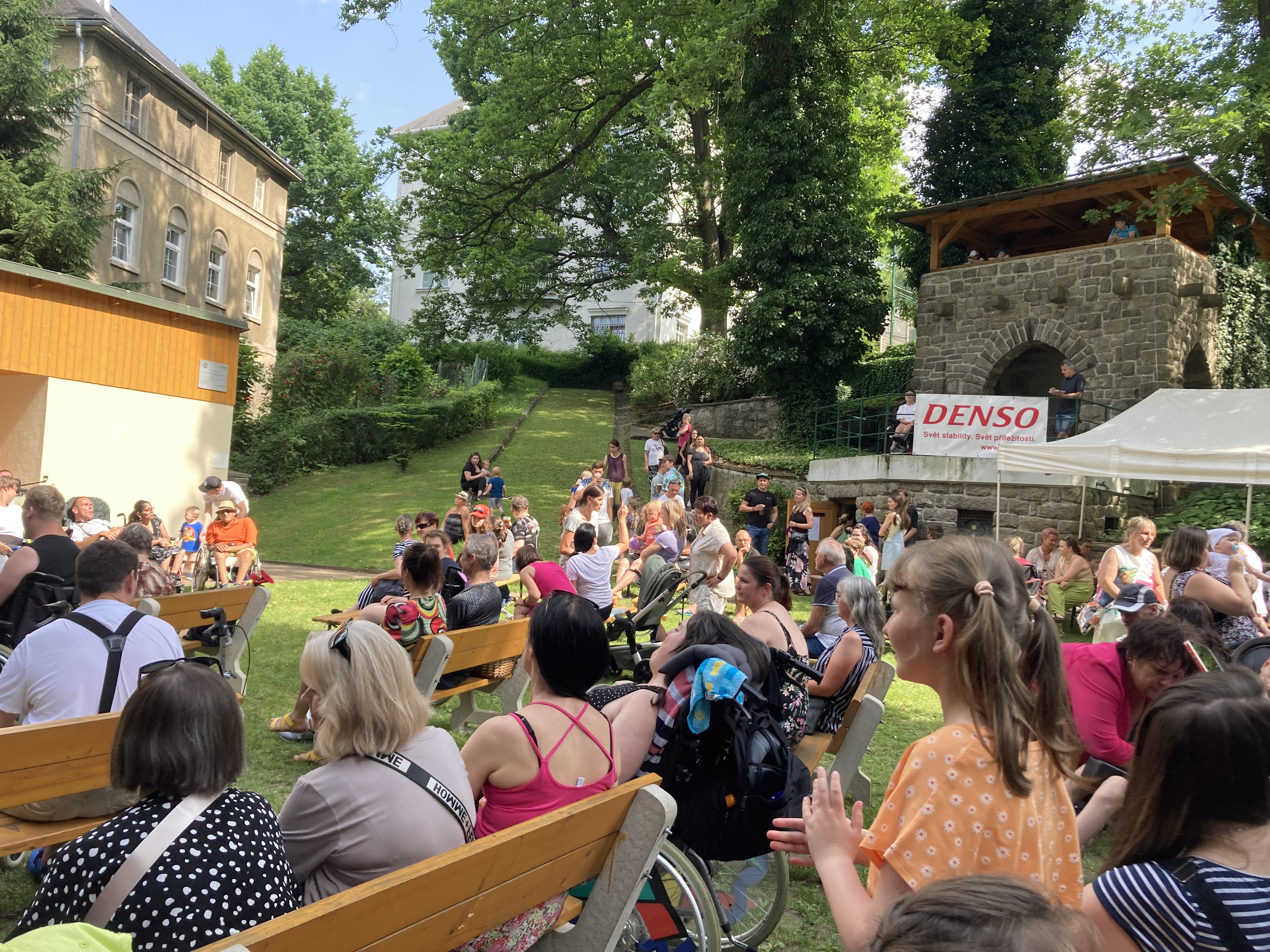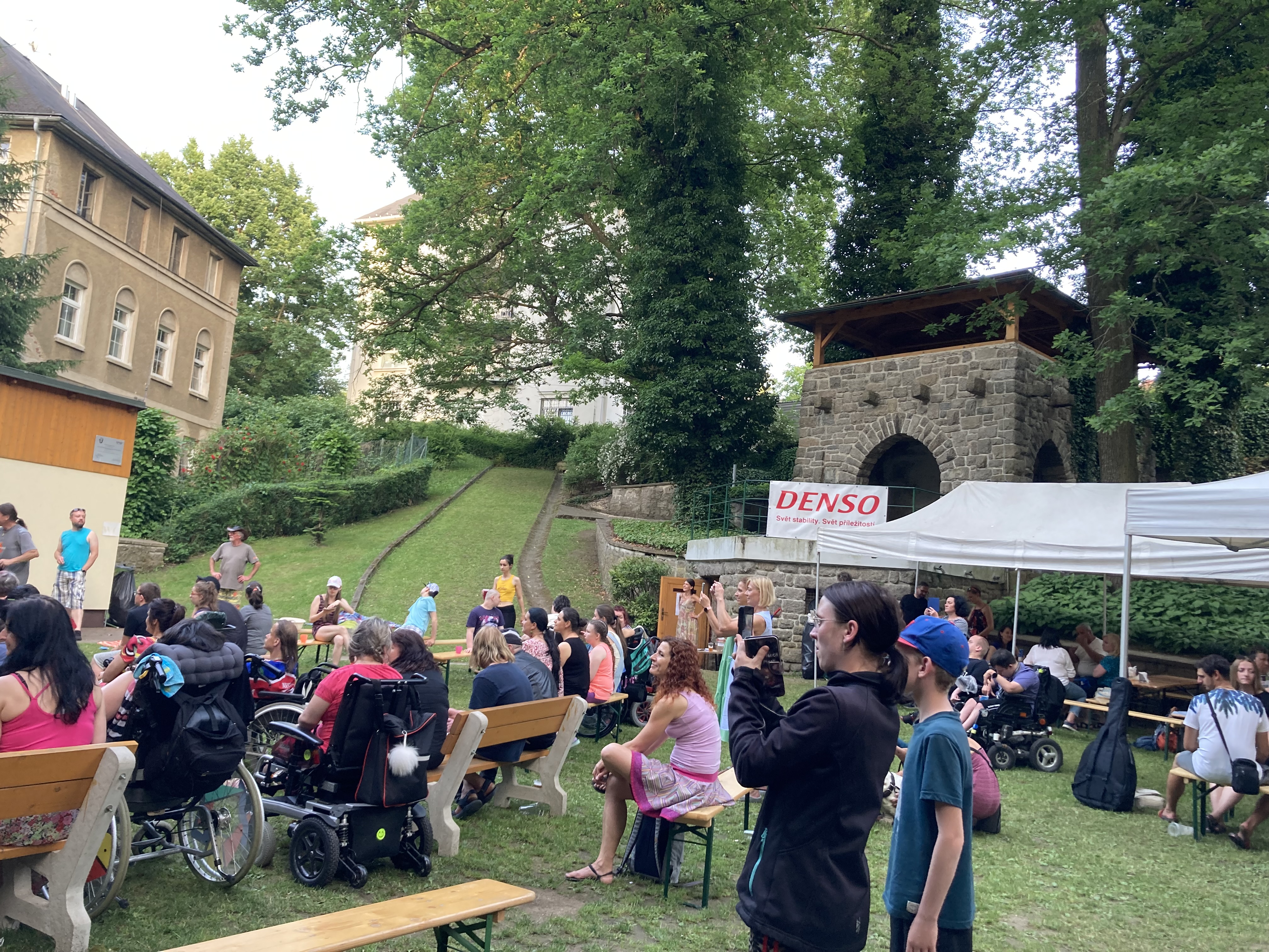 V červnu jsme si užili v Jedličkově ústavu další ročník tradiční Zahradní slavnosti. Opět se prodávaly výrobky z našich dílen, kapely jako Rachot Band, Cigarette Pillowbag, Pubcoustic a Tres Udos nám rozproudily krev v žilách a to díky společnosti DENSO, která byla sponzorem všech vystoupení v ten den. Tímto jí velice děkujeme za podporu a přízeň, velice si toho vážíme. Jídla a pití bylo dost, také se poprvé roztopila naše nová komunitní pec, ve které nám rodinná firma Moven pekla výbornou pizzu.